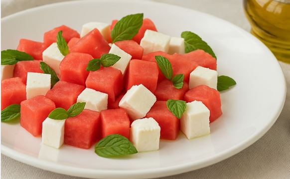 Sıcak yaz günlerinde en çok tercih edilen ikililerden biri: karpuz ve beyaz peynir. Hem serinletici hem de hazırlaması oldukça kolaydır.